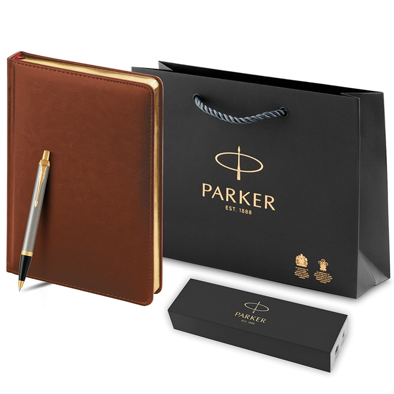 Набор Parker IM Brushed Metal GT из шариковой ручки и ежедневника коричневого цвета в Челябинске